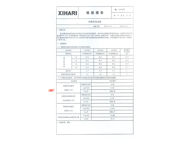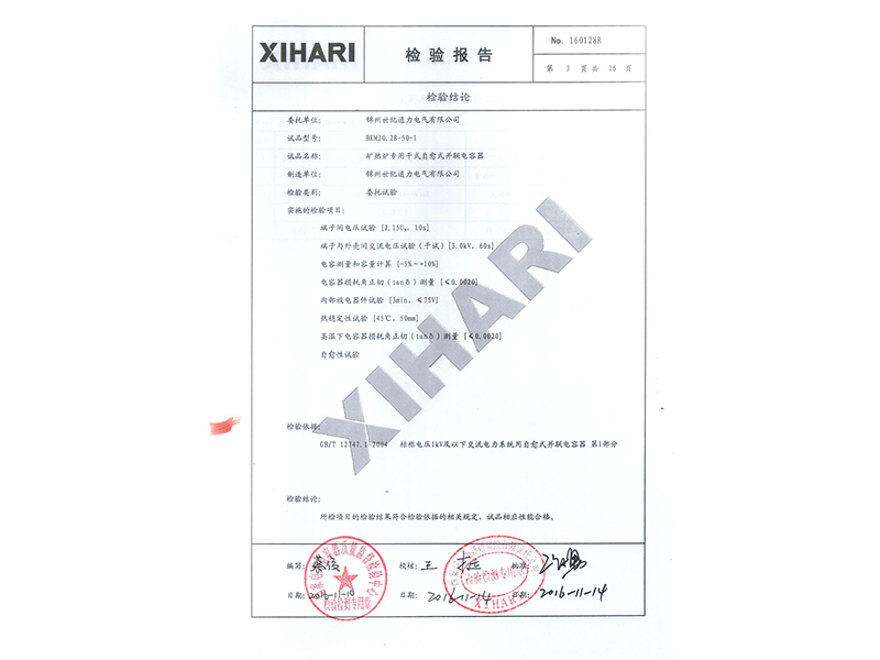 報告 礦熱爐專用干式自愈式電容器型式試驗報告